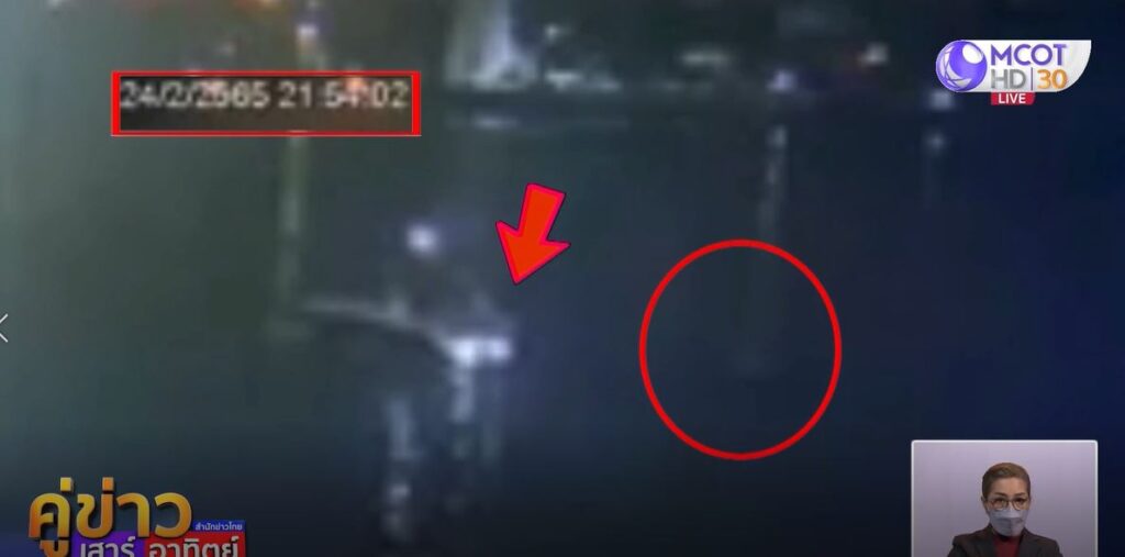 โลกโซเชียลเปิดเผยวงจรปิดท่าเรือเทเวศร์ ขณะมีเรือคล้ายสปีดโบ๊ทเข้ามาใกล้กับสะพานพระราม 8 เมื่อซูมเข้าไปใกล้ๆ จะเห็นภาพเหมือนวัตถุบางอย่างอยู่ด้านขวาของเรือตกลงไปน้ำ ซึ่งเป็นช่วงเวลา 21.54 น. วันที่ 24 กุมภาพันธ์ 2565 .-สำนักข่าวไทย