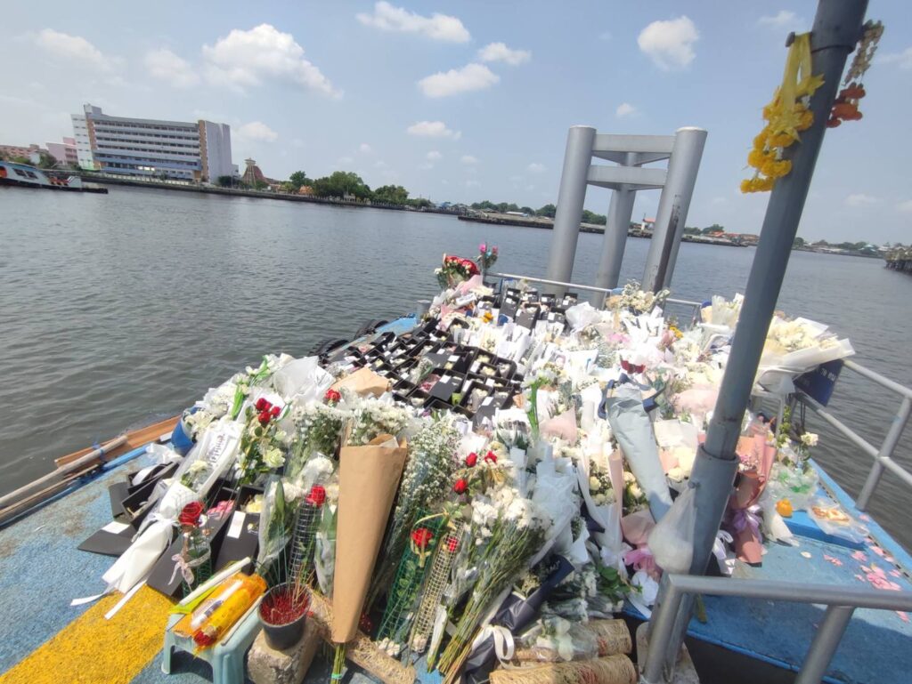 ส่วนที่โป๊ะท่าเรือพิบูลสงคราม 1 ตลอดทั้งวัน ยังคงมีผู้คนทยอยนำดอกไม้มาวางที่โป๊ะไว้อาลัยดาราสาว จนเต็มพื้นที่ครึ่งโป๊ะแล้ว ส่วนใหญ่จะเดินทางมากันเอง แต่มีบ้างบางรายที่ใช้บริการจักรยานยนต์รับจ้างมาวางอกไม้ให้ .-สำนักข่าวไทย