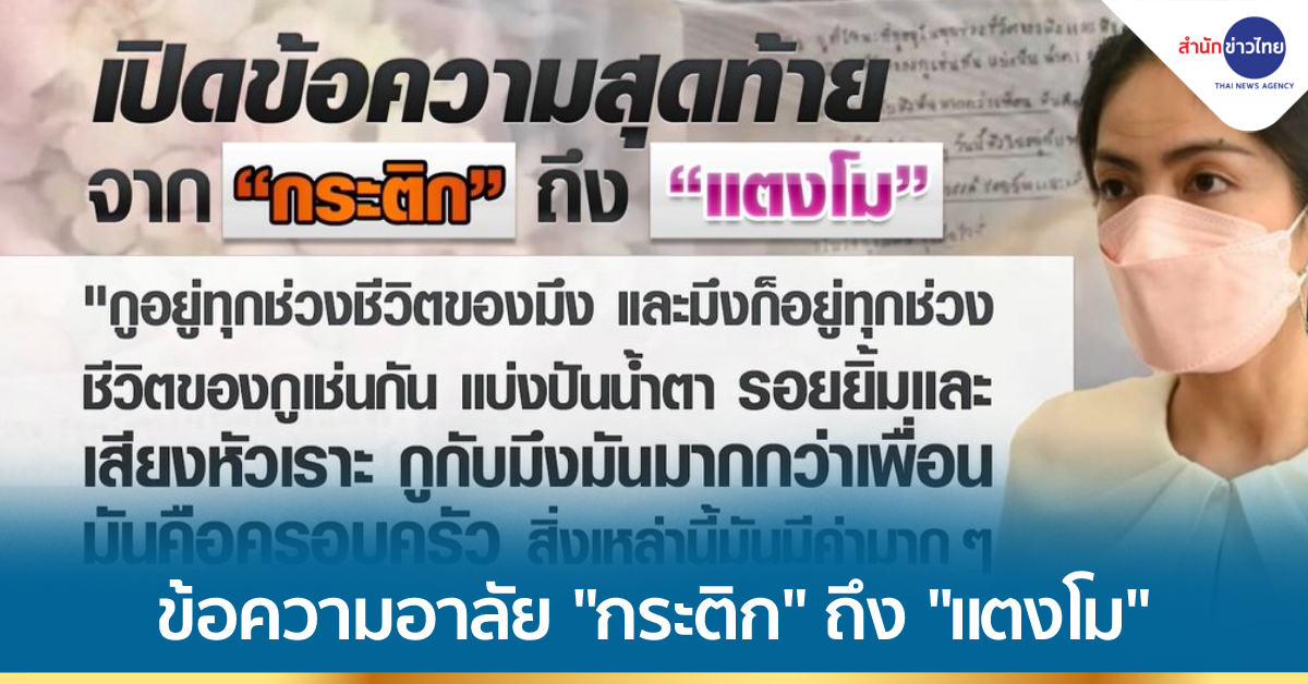 กรุงเทพฯ 11 มี.ค. – เปิดข้อความสุดท้ายจาก “กระติก อิจศรินทร์” เพื่อนสนิทและผู้จัดการส่วนตัว ถึง “แตงโม ภัทรธิดา” .-สำนักข่าวไทย
