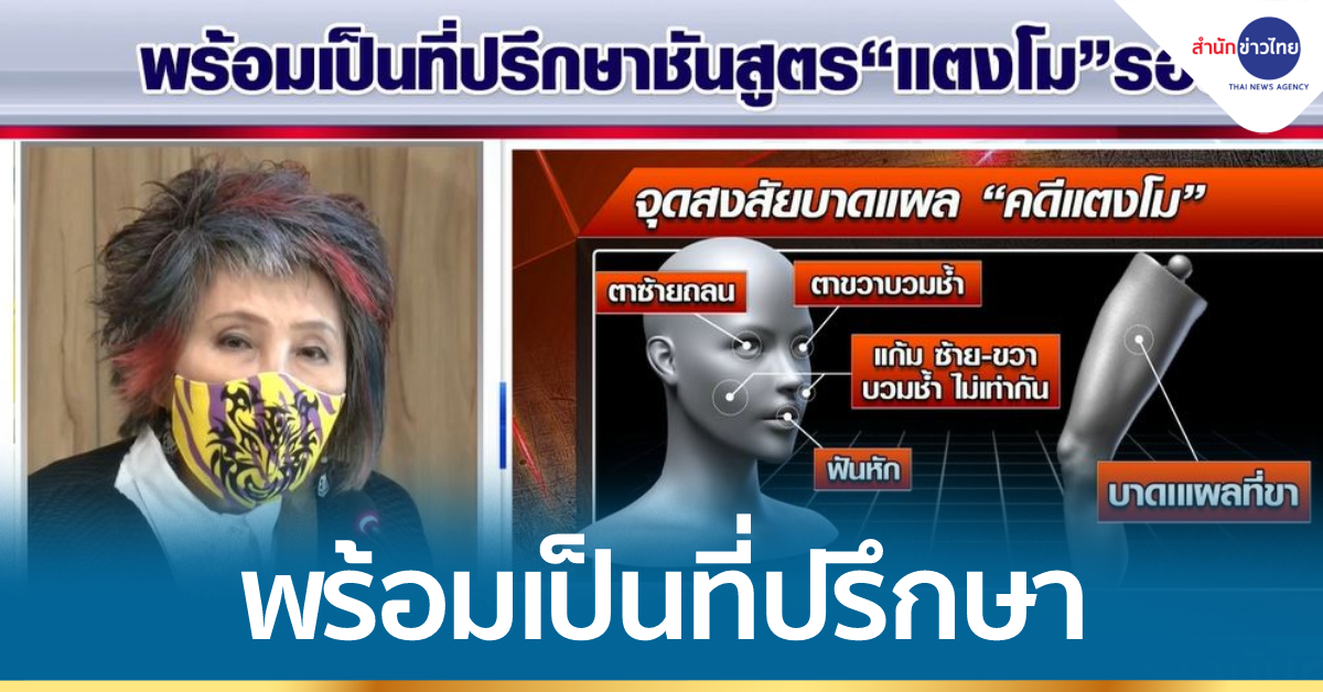 กรุงเทพฯ 12 มี.ค. – แพทย์หญิงคุณหญิงพรทิพย์ โรจนสุนันท์ อดีต ผอ.สถาบันนิติวิทยาศาสตร์ พร้อมเป็นที่ปรึกษาชันสูตรศพ “แตงโม” รอบ 2