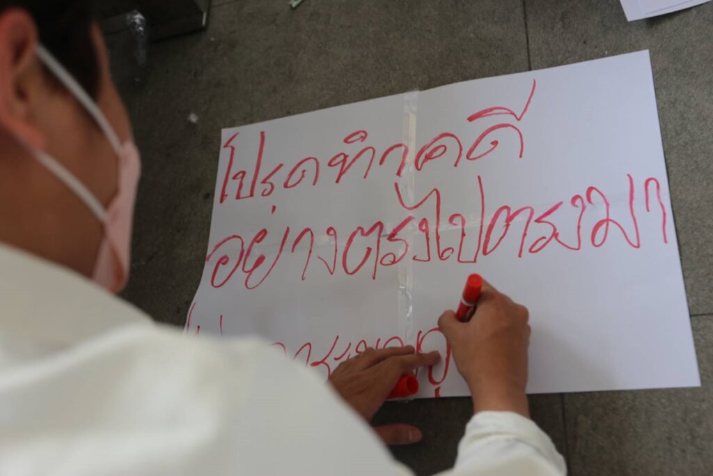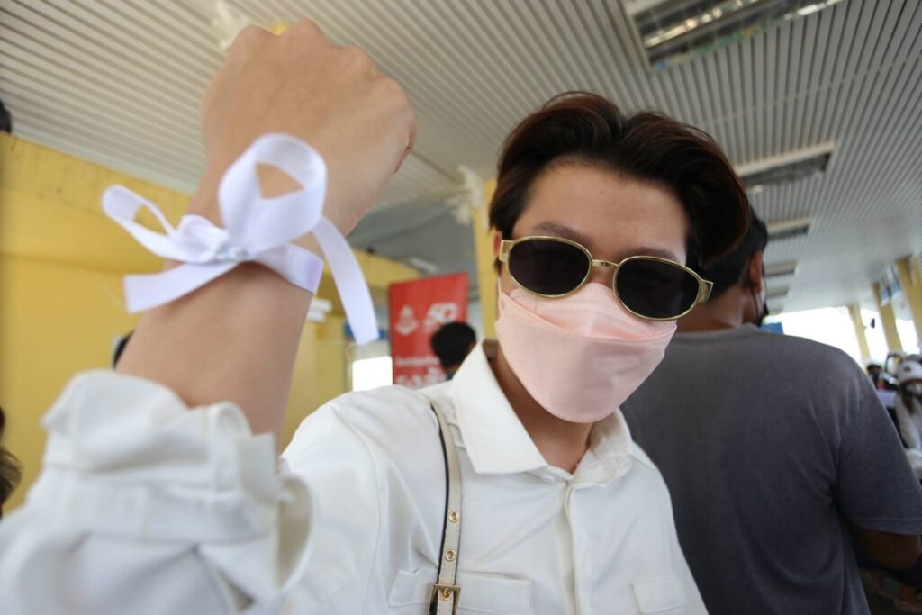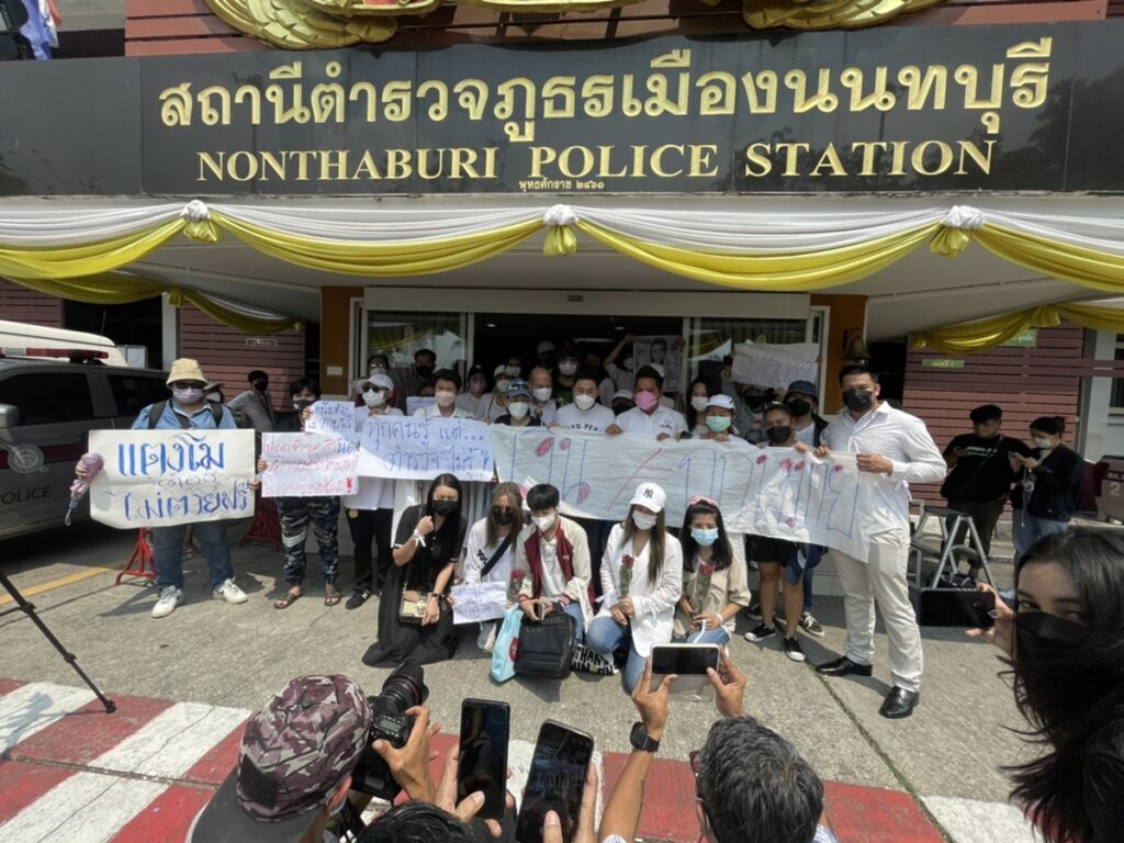 นนทบุรี 13 มี.ค. – “ทนายษิทรา” พร้อมทนายความอีก 2 คน มาให้กำลังใจกลุ่มแฟนคลับ “แตงโม ภัทรธิดา” ที่รวมตัวมาร่วมแสดงความอาลัย และแสดงออกเชิงสัญลักษณ์ด้วยการชูป้ายข้อความเรียกร้องความเป็นธรรมให้กับ “แตงโม”
