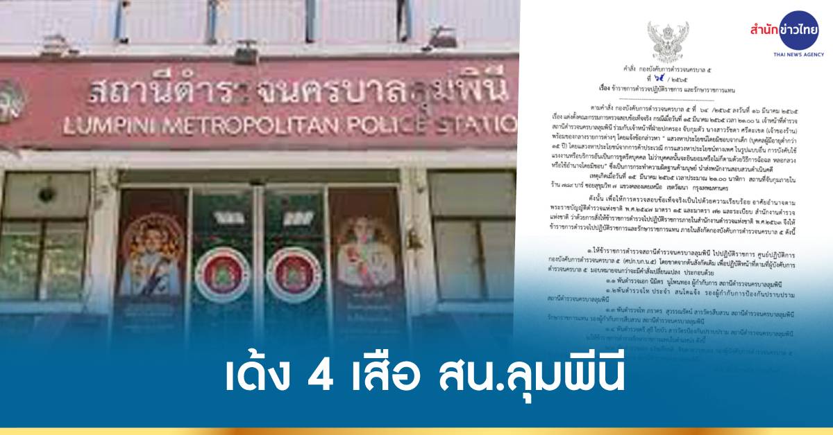 กทม. 16 มี.ค.-ผบก.น.5 สั่งเด้ง 4 เสือ สน.ลุมพีนี เซ่นปกครองบุกจับลอบค้ากามกลางกรุง