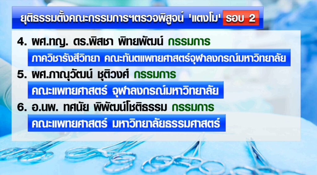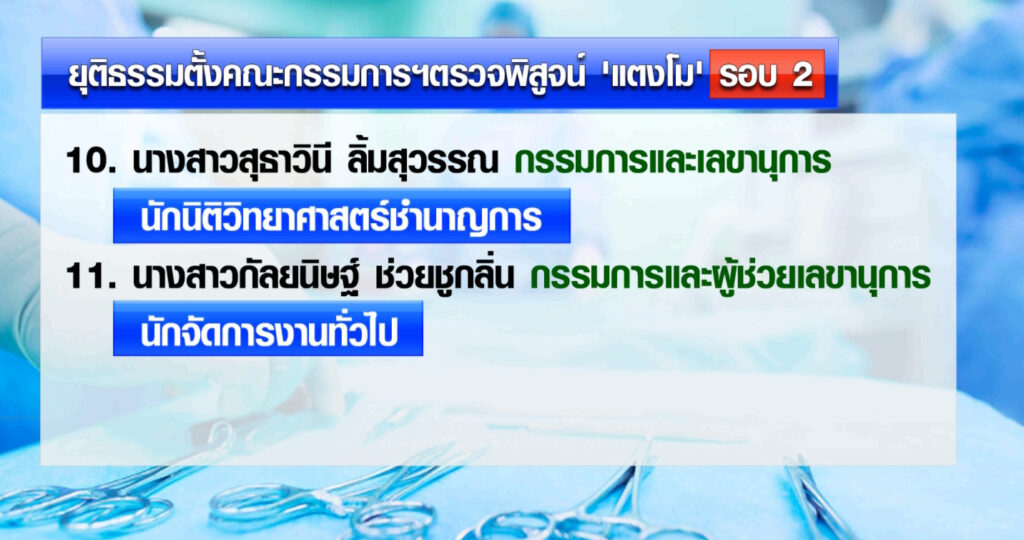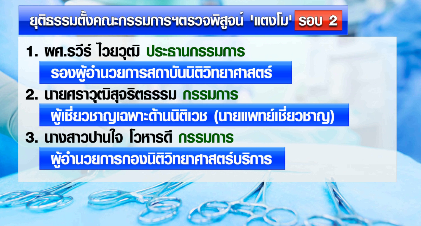 ด้านว่าที่ร้อยตรีธนกฤต จิตรอารีย์รัตน์ เลขารัฐมนตรียุติธรรม เผยว่าในเวลาเที่ยงจะประชุมกันในประเด็นที่จะผ่าพิสูจน์ หลังจากนั้นจะผ่าโดยในเวลา 3 ชั่วโมง ผลบางส่วน อาจจะบอกได้ซึ่งกรอบการทำงานทั้งหมด จะต้องเสร็จสิ้นภายใน 14 วัน ยืนยันว่าการชันสูตรในรอบนี้ไม่มีข้อขัดแย้ง ระหว่างหน่วยงานนิติวิทยาศาสตร์ ที่มาวันนี้มายืนยันว่าให้กระบวนการชันสูตรศพแตงโมรอบที่ 2 อย่างถูกต้อง ส่วนกระแสข่าวมีบุคคลไม่เห็นด้วยกับการผ่ารอบ2 เลขาฯ ยืนยัน ทุกอย่างตัองตรงไปตรงมาก่อนถึงเวลาผ่าชันสูตร 1 ชั่วโมง จะเชิญแม่ของแตงโม และทนายความมาพูดคุย เพื่อซักถามทบทวนประเด็นข้อสงสัยอีกครั้ง ก่อนจะมีการผ่าจริงให้ตรงตามความประสงค์ของญาติ หลังจากผ่าเสร็จ ซึ่งการผ่าศพครั้งนี้ จะทำการชันสูตรในจุดที่แม่ร้องขอตามเอกสารที่ระบุ 11 จุด เช่น รอยไหม้บริเวณหน้าอก, ฟันมีการหักหรือไม่, ศีรษะถูกกระแทกหรือไม่, ที่มาของบาดแผลบริเวณขาขวา และการตรวจเลือดว่ามีสารใดตกค้างอยู่ในร่างกายหรือไม่ ซึ่งจะทำการผ่าพิสูจน์ศพในเวลา เวลา 14.00 น. มีคณะกรรมการผ่าชันสูตร รวม 11 ท่าน โดยเชิญแพทย์จากโรงพยาบาลรัฐ 3 แห่ง มาเป็นผู้ผ่าศพ ประกอบด้วย โรงพยาบาลจุฬาลงกรณ์, โรงพยาบาลรามาธิบดี และโรงพยาบาลธรรมศาสตร์เฉลิมพระเกียรติ ทั้งนี้ยังมีทีมแพทย์นิติเวช จากสถาบันนิติเวชวิทยา โรงพยาบาลตำรวจ ซึ่งเป็นทีมที่ผ่าศพชันสูตรในรอบแรก มาร่วมสังเกตการณ์ด้วย