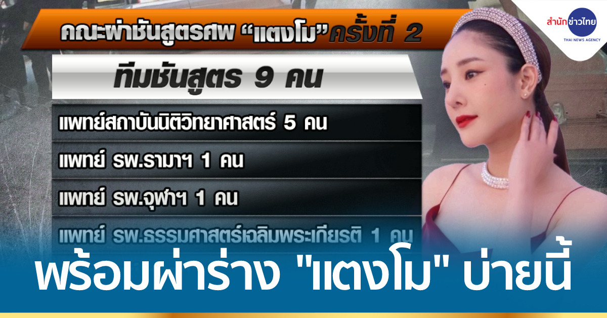 กรุงเทพฯ 17 มี.ค.- เตรียมผ่าศพแตงโมรอบสอง 14.00 น.วันนี้ โดยจะผ่าพิสูจน์ตามความต้องการของแม่ ด้าน ผอ.สถาบันนิติวิทยาศาสตร์ กระทรวงยุติธรรม ยันไม่มีความขัดแย้ง ขณะที่ พญ.คุณหญิงพรทิพย์ พร้อมร่วมสังเกตการณ์
