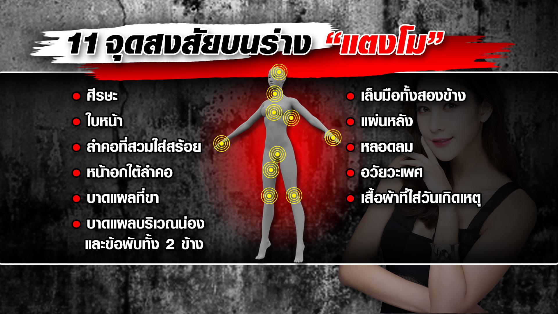 ส่วนประเด็นที่มีการทำร้าย เช่น บีบคอ พญ.คุณหญิงพรทิพย์ บอกว่า ดวงตาไม่มีเส้นเลือดแตก ส่วนบาดแผลที่ขามีลักษณะเฉพาะ ซึ่งต้องให้พนักงานสอบสวนคุยกับคณะกรรมการผ่าชันสูตรและนิติเวช เพื่อนำไปเปรียบเทียบว่าเกิดจากอะไร ส่วนการล่วงละเมิดทางเพศ ตรวจสอบไม่พบความผิดปกติ ยืนยันบริเวณศีรษะและฟันไม่พบความผิดปกติ ส่วนกระเพาะปัสสาวะไม่เต็ม แต่บอกอะไรไม่ได้ เพราะศพเน่า ไม่ได้เห็นทันทีและไม่สามารถบอกได้เลย