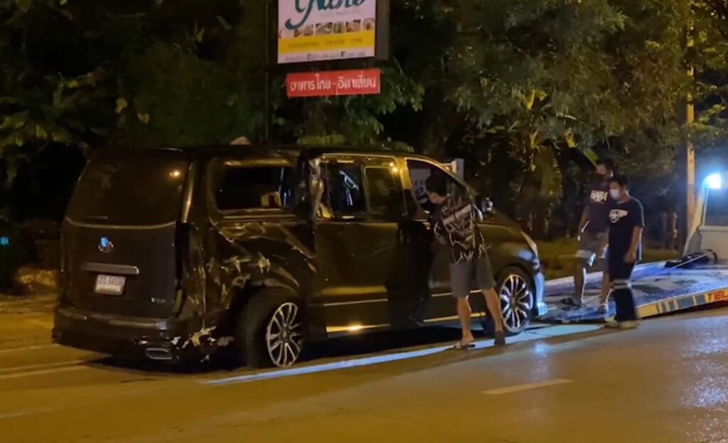 ในที่ที่เกิดเหตุ พบรถ จยย.บิ๊กไบค์ ยี่ห้อฮอนด้า รุ่นซีบีอาร์ 650 สีดำ เสียหายพังยับเยินทั้งคันอยู่บริเวณเกาะกลางถนน ใกล้กันพบผู้เสียชีวิต 2 คน ร่างกระเด็นออกจากรถไปเกือบตกคลองบริเวณเกาะกลางถนน ทราบผู้เสียชีวิต 1 คน คือ นายจตุพงษ์ หุ่นไทยสงค์ อายุ 29 ปี เป็นคนขับขี่รถ จยย. ส่วนคนซ้อนท้ายไม่พบเอกสารติดตัว อยู่ระหว่างพิสูจน์ทราบตัวบุคคล และถัดไปประมาณ 100 เมตร พบรถตู้ฮุนได สีดำ สภาพรถด้านขวาหลังคนขับ ถูกชนพังเสียหายเป็นบริเวณกว้าง