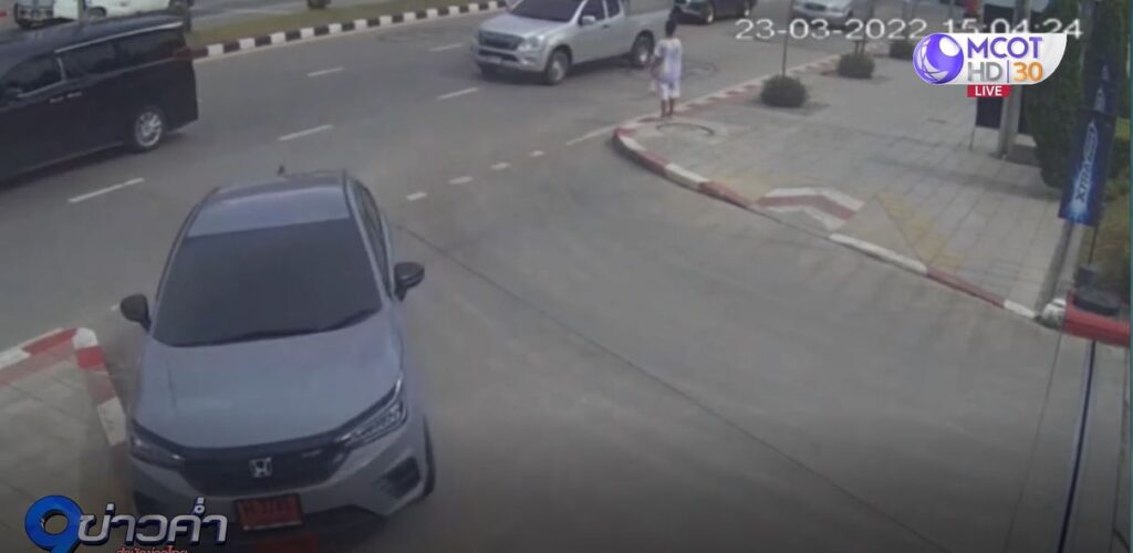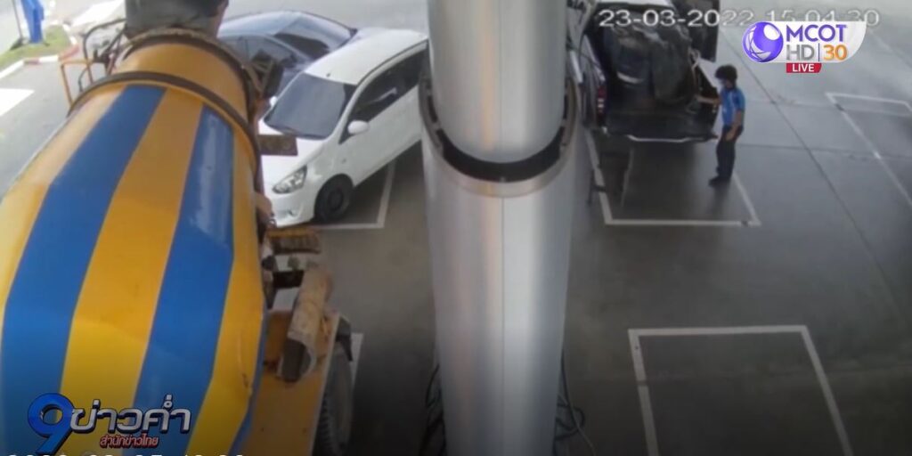 นี่คือภาพจากกล้องวงจรปิดที่บันทึกภาพขณะเกิดเหตุ โดยจะเห็นรถยนต์ฮอนด้าสีเทา ขับเข้ามาในปั๊มแห่งหนึ่ง ปากซอยบางขุนเทียน 14 กทม. ด้วยความเร็ว และพุ่งชนรถยนต์สีขาวอีกคันหนึ่งที่กำลังจอดเติมน้ำมันอยู่บริเวณหัวอย่างแรง จนรถคันสีขาวอัดกระแทกกับหัวจ่ายน้ำมันจนพังทั้งรถและหัวจ่ายน้ำมัน พนักงานเติมน้ำมันสาวชาวเมียนมา ที่ยืนอยู่ท้ายรถเก๋งคันสีขาวถูกอัดก๊อปปี้อย่างแรง จนขาขาดทั้ง 2 ข้าง ล่าสุดแพทย์ระบุว่าไม่สามารถผ่าตัดต่อขาคืนได้ ขณะที่คนเจ็บถามเมื่อฟื้นขาหนูอยู่ไหน