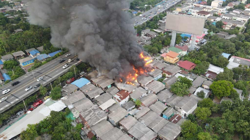 กรุงเทพฯ 8 เม.ย. – เหตุเพลิงไหม้ชุมชนใกล้วัดสารอดถนนสุขสวัสดิ์ ที่เกิดเหตุลักษณะเป็นชุมชนบ้านไม้ ปลูกติดกันหลายหลัง เจ้าหน้าที่ดับเพลิงต้องใช้เวลานานกว่า 1 ชั่วโมง จึงควบคุมเพลิงให้ดับลงได้