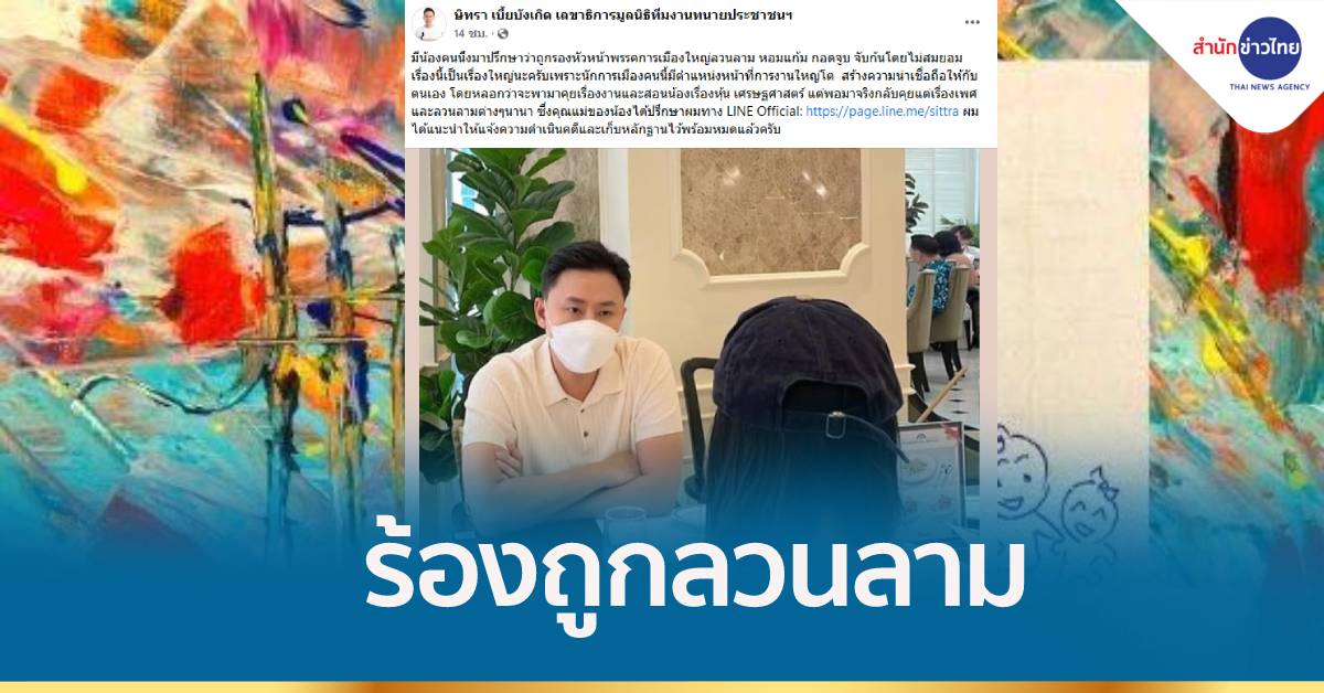 เฟซบุ๊ก “ษิทรา เบี้ยบังเกิด เลขาธิการมูลนิธิทีมงานทนายประชาชนฯ” ของนายษิทรา เบี้ยบังเกิด หรือทนายตั้ม ทนายความชื่อดัง โพสต์ข้อความระบุว่า “มีน้องคนนึงมาปรึกษาว่าถูกรองหัวหน้าพรรคการเมืองใหญ่ลวนลาม หอมแก้ม กอดจูบ จับก้น โดยไม่สมยอม เรื่องนี้เป็นเรื่องใหญ่นะครับ เพราะนักการเมืองคนนี้มีตำแหน่งหน้าที่การงานใหญ่โต สร้างความน่าเชื่อถือให้กับตนเอง โดยหลอกว่าจะพามาคุยเรื่องงานและสอนน้องเรื่องหุ้น เศรษฐศาสตร์ แต่พอมาจริงกลับคุยแต่เรื่องเพศ และลวนลามต่างๆ นานา ซึ่งคุณแม่ของน้องได้ปรึกษาผมทางไลน์ ผมได้แนะนำให้แจ้งความดำเนินคดีและเก็บหลักฐานไว้พร้อมหมดแล้วครับ” เรื่องนี้กลายเป็นที่วิจารณ์ในโลกโซเชียลฯ จำนวนมาก