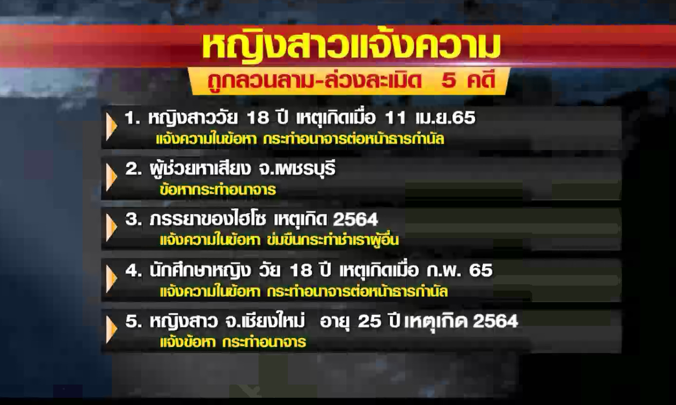 5.หญิงสาว จ.เชียงใหม่ อายุ 25 ปี เหตุเกิดต้นปี 2564 ข้อหา กระทำอนาจาร