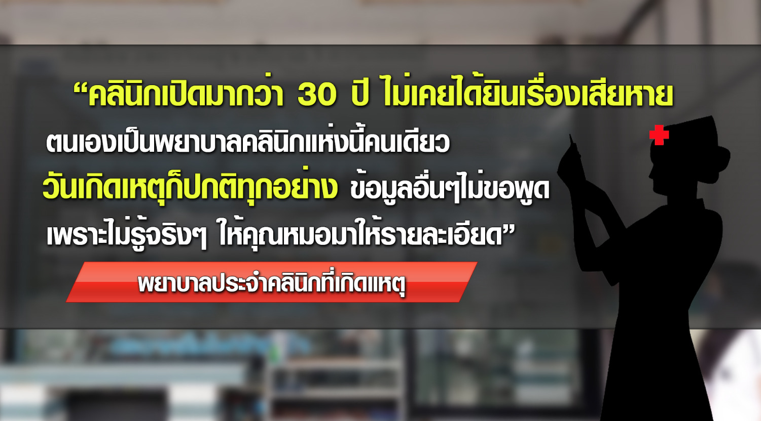 ผู้สื่อข่าวลงพื้นที่ไปคลินิกที่ผู้เสียหายกล่าวอ้าง พยาบาลแจ้งว่าแพทย์คนดังกล่าวไม่อยู่ แต่ยืนยันว่าแพทย์คนดังกล่าวเป็นเจ้าของคลินิกเปิดมานานกว่า 30 ปี และที่ผ่านมาไม่เคยมีเรื่องเสียหาย พร้อมแจ้งว่าแพทย์คนดังกล่าวจะเดินทางมาให้รายละเอียดด้วยตนเอง