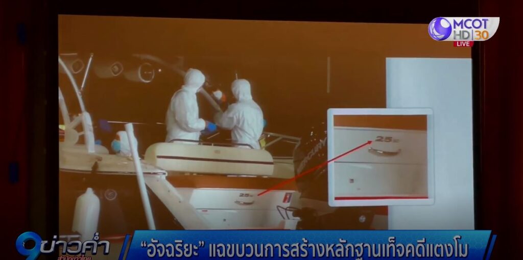 ช่วงแรกของการแถลง นายอัจฉริยะบอกว่ามีตำรวจยอมรับผิดว่าสิ่งที่เกิดขึ้นในสำนวนคดีนั้นไม่เป็นความจริง การจำลองบาดแผลที่ขาของแตงโมไม่สามารถเข้าได้กับใบพัดเรือ เป็นเรื่องที่มีการสร้างหลักฐานเท็จขึ้นมาทั้งหมด โดยมีหลักฐานสำคัญเป็นข้อความแชท อ้างว่าเป็นแชทผู้อำนวยการสถาบันนิติเวช โรงพยาบาลตำรวจ กับศัลยแพทย์ โรงพยาบาลพระมงกุฎ ที่มีการพูดคุยกันว่าชุดสืบสวนสอบสวนตำรวจภูธรภาค 1 ยอมรับบาดแผลไม่ได้เกิดจากใบพัดเรือ