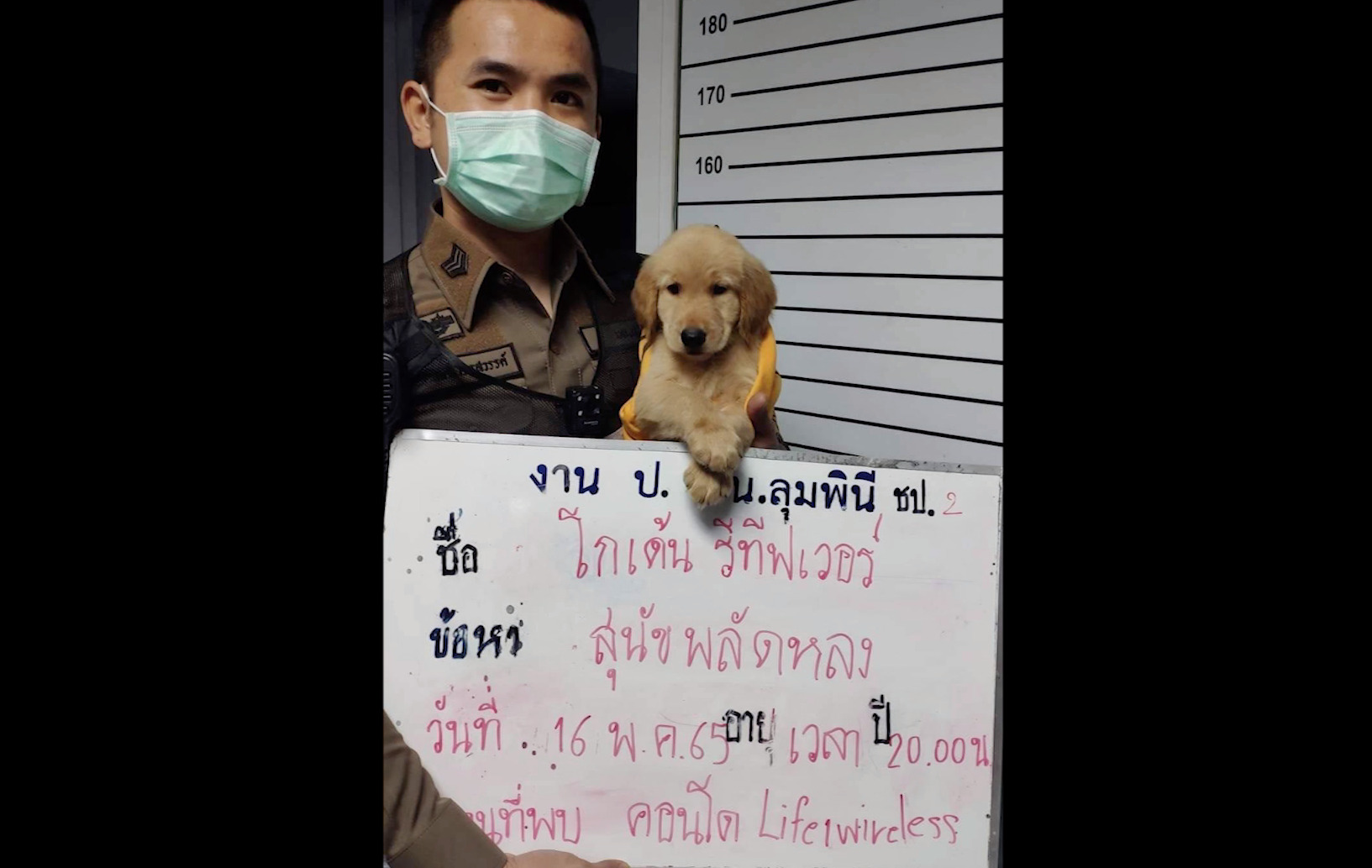 หลังเพจดังโพสต์ประกาศตามหาเจ้าของ สุนัขพันธุ์โกลเดน รีทรีฟเวอร์ เพศเมีย อายุไม่เกิน 2 เดือน แต่ต้องบอกว่าเป็นประกาศที่ไม่ธรรมดา เพราะตำรวจก็น่ารัก จับน้องถ่ายรูปกับป้ายประวัติผู้ต้องหา จนเป็นที่ฮือฮาในโลกโซเชียล ล่าสุด สน.ลุมพินี เผยว่าได้รับการติดต่อจากเจ้าของสุนัขแล้ว แจ้งว่าจะเข้ามารับน้องกลับบ้านตอน 2 ทุ่มคืนนี้