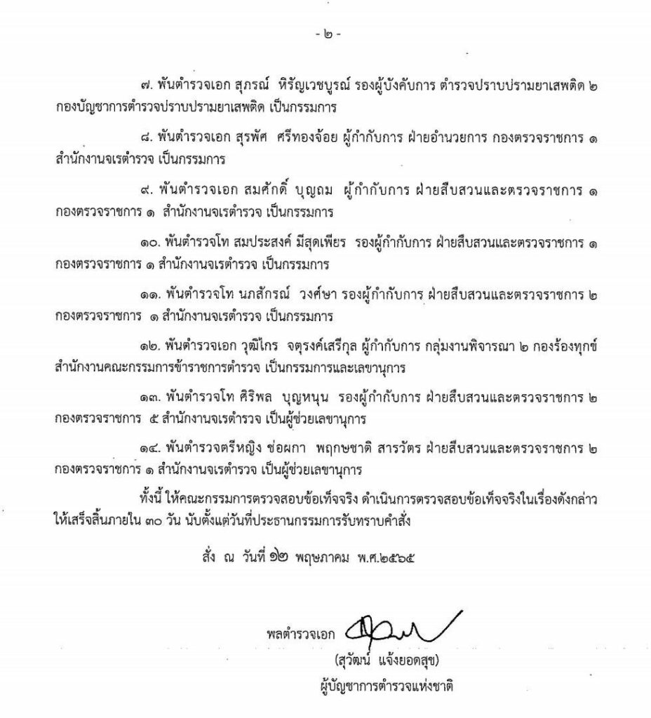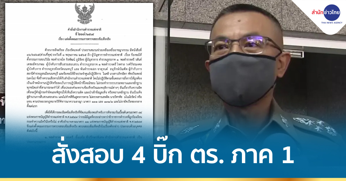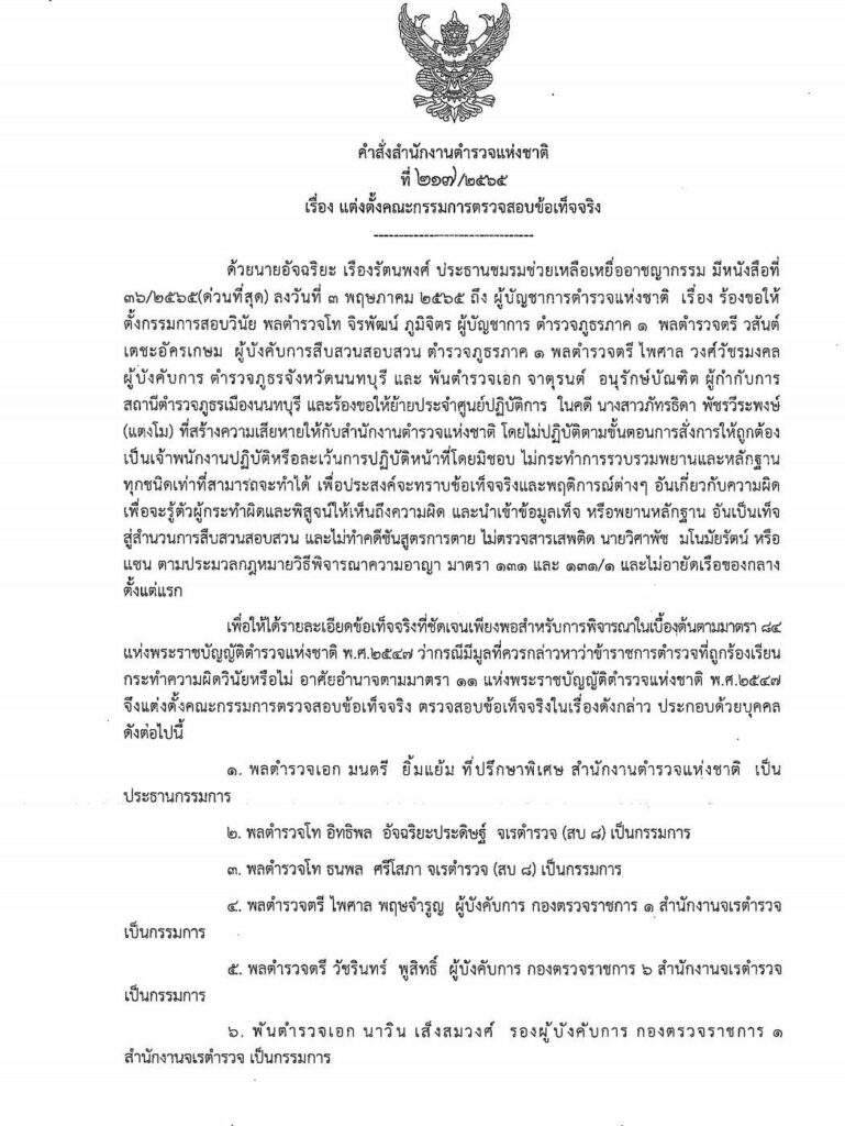 กรุงเทพฯ 18 พ.ค. – ผบ.ตร. ลงนามคำสั่งตั้งกรรมการตรวจสอบข้อเท็จจริง 4 บิ๊กตำรวจภาค 1 ชุดคลี่คลายคดีการเสียชีวิตของ “แตงโม” หลัง “อัจฉริยะ” ยื่นหนังสือร้องเรียน