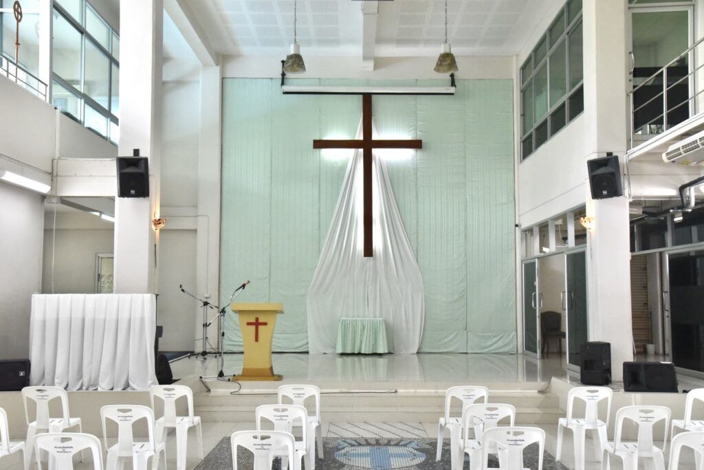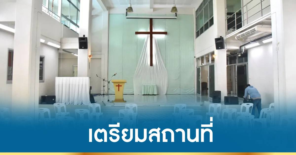 ปทุมธานี 23 พ.ค.- เจ้าหน้าที่ประจำคริสตจักรเมธอดิสท์ รังสิต คลอง 4 ปทุมธานี เริ่มจัดเตรียมสถานที่ภายในหอประชุมตึกมัสการ สถานที่ประกอบพิธีฌาปนกิจศพ “แตงโม ภัทรธิดา” ในวันพรุ่งนี้