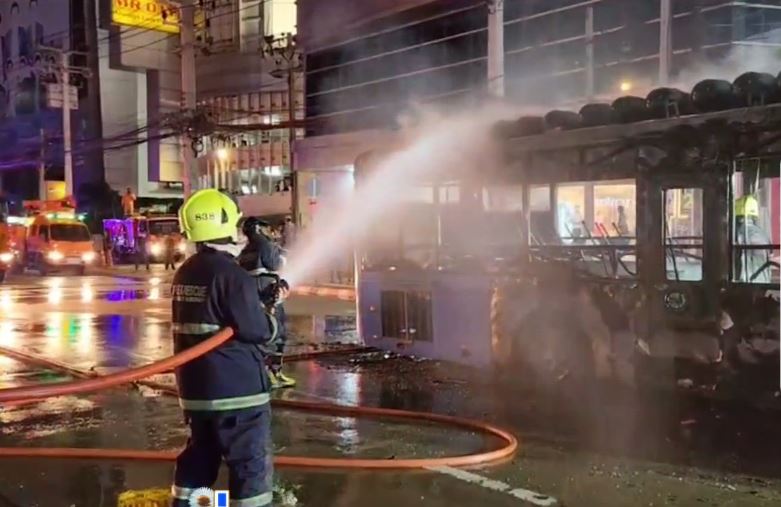 ขณะที่พนักงานขับรถ และพนักงานเก็บค่าโดยสารบอกว่า ขับรถมาตามปกติ จนมาถึงตรงจุดเกิดเหตุ ได้ยินเสียงดังมาจากด้านหลัง ผู้โดยสารในรถต่างตกใจส่งเสียงร้อง จากนั้นก็เกิดไฟลุกไหม้ จึงรีบให้ผู้โดยสารลงจากรถ นำถังดับเพลิงมาฉีดแต่ไม่สามารถควบคุมได้ จึงรีบแจ้งขอความช่วยเหลือ