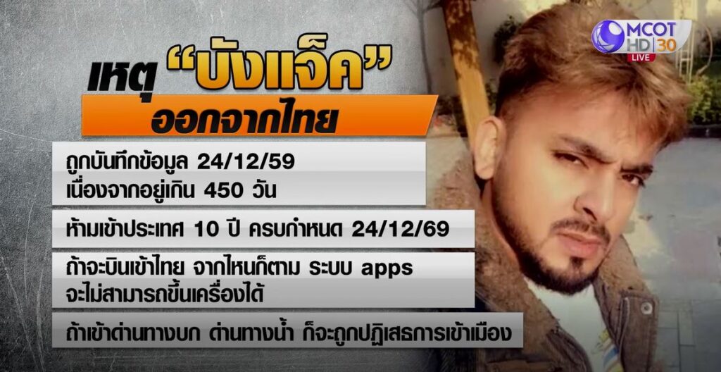 กรุงเทพฯ 26 พ.ค. – เปิดประวัติ “บังแจ็ค” สำนักงานตรวจคนเข้าเมืองห้าม “บังแจ็ค” เข้าประเทศ 10 ปี ในคดี Over Stay 450 วัน ถูกศาลสั่งเนรเทศพ้นไทยเมื่อปลายปี 2559