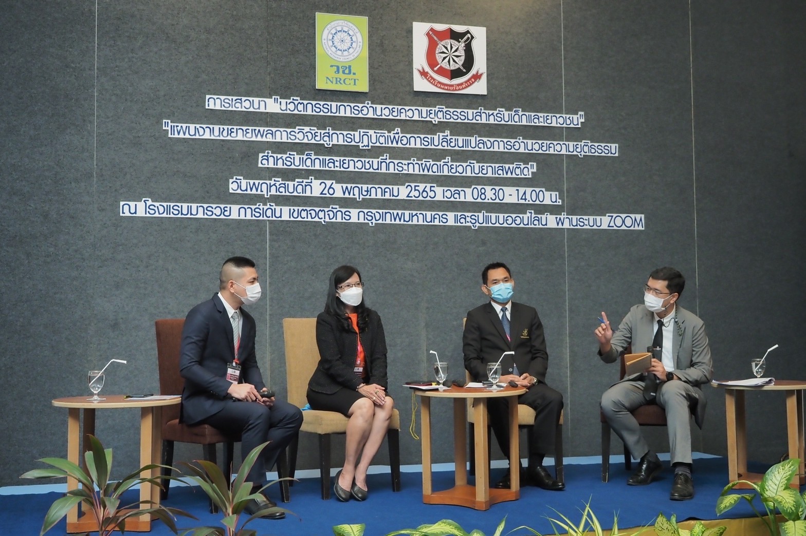 กรุงเทพฯ 26 พ.ค.- โรงเรียนนายร้อยตำรวจร่วมกับสำนักงานการวิจัยแห่งชาติ จัดเสวนานวัตกรรมการอำนวยความยุติธรรมสำหรับเด็กและเยาวชน ขยายผลการวิจัยสู่การปฏิบัติ เพื่อการเปลี่ยนแปลงการอำนวยความยุติธรรมสำหรับเด็กและเยาวชนที่กระทำผิดเกี่ยวกับยาเสพติด