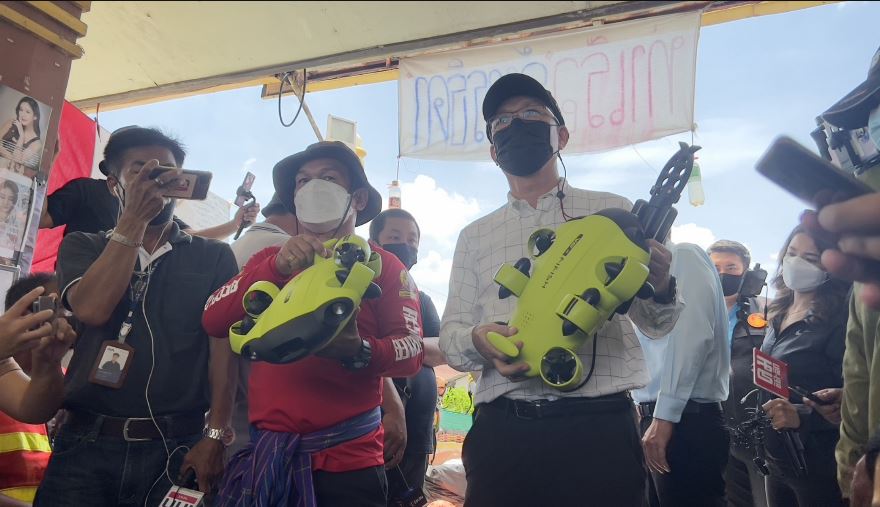 สำหรับอุปกรณ์ที่เป็นโดรนสำรวจใต้น้ำ ตัวแทนจำหน่ายบริษัทเอกชน เปิดเผยว่าสามารถดำน้ำได้ลึกประมาณ 100 เมตร มีกล้องความละเอียด 4K สามารถบันทึกภาพและวิดีโอได้ 30 เฟรมต่อวินาที สแกนหาวัตถุที่อยู่ใต้ดินโคลนได้ลึกประมาณ 1 ฟุต โดยเครื่องจะส่งภาพมาดูได้ในระบบแบบเรียลไทม์ และสามารถตรวจหาวัตถุที่ตกอยู่มานานได้หากว่ามีการทิ้งไว้จริง เพราะที่ผ่านมาเคยใช้ค้นหาในคดีรถขับตามจีพีเอสตกน้ำที่ จ.นครสวรรค์ และหาเหรียญเก่าในแม่น้ำเจ้าพระยาอายุกว่า 100 ปีมาแล้ว