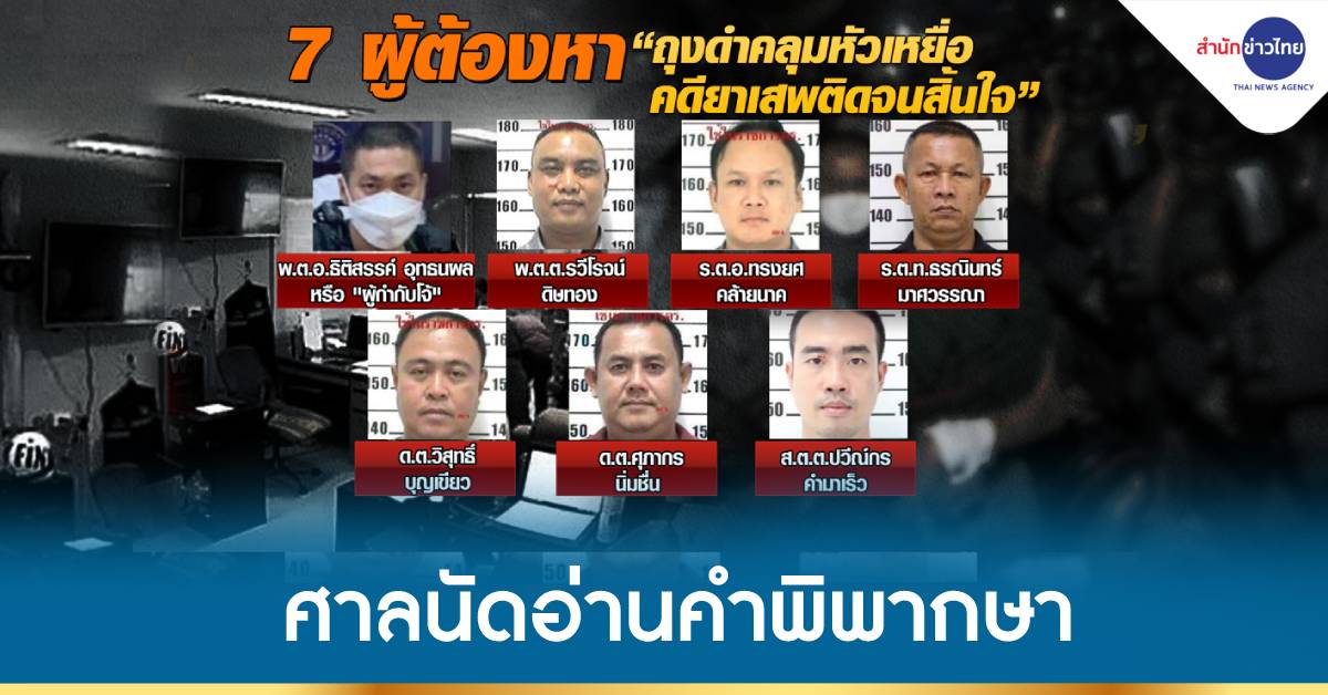 วันนี้ ศาลอาญาคดีทุจริตและประพฤติมิชอบกลาง นัดอ่านคำพิพากษาของศาลชั้นต้นในคดี พ.ต.อ.ธิติสรรค์ อุทธนผล หรือโจ้ อดีตผู้กำกับ สภ.เมืองนครสวรรค์ และลูกน้องชุดปราบปรามยาเสพติด หรือปช 05. อีก 6 คน ตกเป็นจำเลยในคดีร่วมกันใช้ถุงดำคลุมศีรษะนายจิระพงษ์ หรือมาวิน ธนพัฒน์ ผู้ต้องหาคดียาเสพติดจนเสียชีวิต