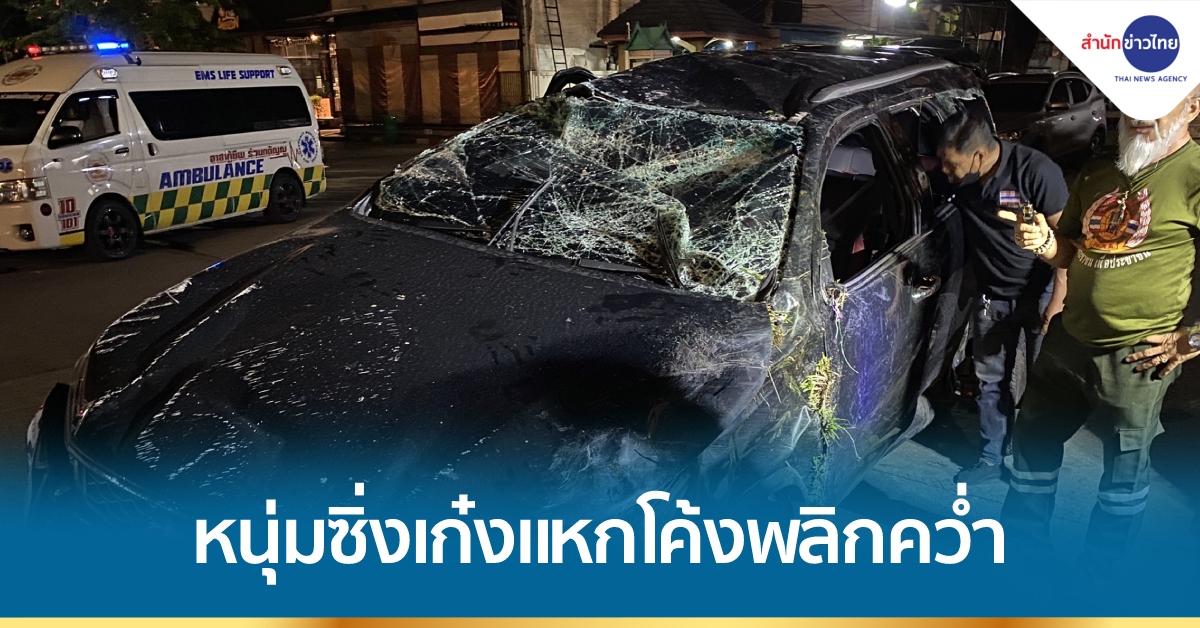 เมื่อเวลา 02.30 น.ที่ผ่านมา ร.ต.อ.วีระวัฒน์ ไพรปัง รองสารวัตร (สอบสวน) สน.บางเขน รับแจ้งอุบัติเหตุรถยนต์เสียหลักพลิกคว่ำ บนถนนผลาสินธุ์ ก่อนทางลงอุโมงค์ราบ 11 ทิศทางมุ่งหน้าออกถนนพหลโยธิน แขวงอนุสาวรีย์ เขตบางเขน กทม. จึงรุดไปตรวจสอบ พร้อมอาสาสมัครมูลนิธิร่วมกตัญญู