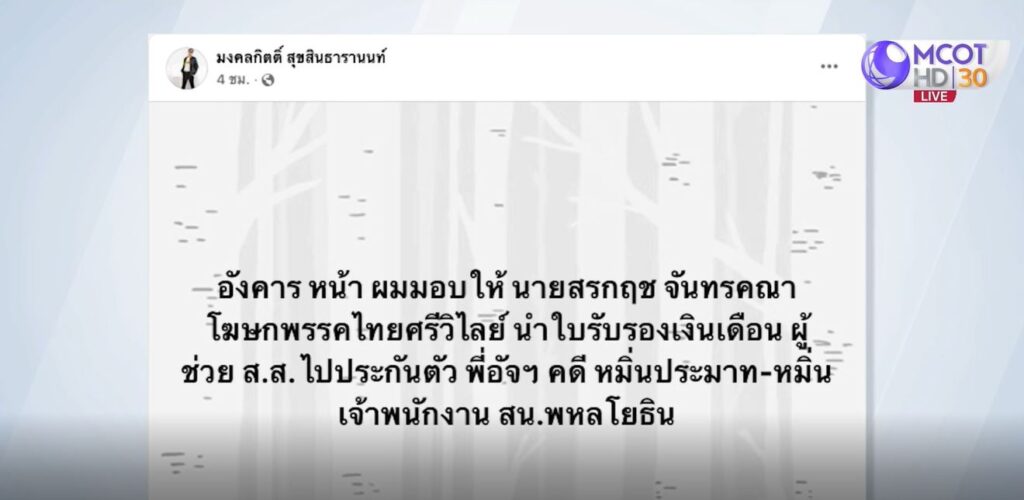 นายมงคลกิตติ์ สุขสินธารานนท์ หรือ ส.ส.เต้ หัวหน้าพรรคไทยศรีวิไลย์ โพสต์เพจเฟซบุ๊กส่วนตัวระบุข้อความว่า “อังคารหน้าจะมอบให้นายสรกฤช จันทรคณา โฆษกพรรคไทยศรีวิไลย์ นำใบรับรองเงินเดือน ผู้ช่วย ส.ส. ไปประกันตัวนายอัจฉริยะ เรืองรัตนพงศ์ ประธานชมรมช่วยเหลือเหยื่ออาชญากรรม คดีหมิ่นประมาท-หมิ่นเจ้าพนักงาน สน.พหลโยธิน”