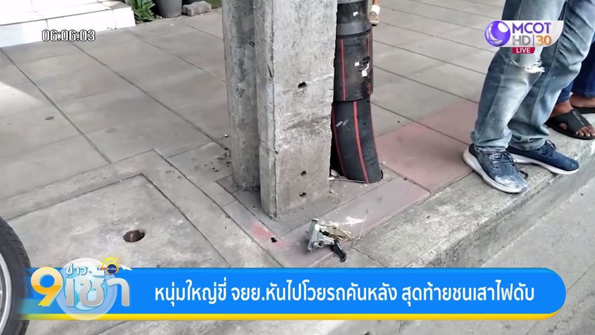 กรุงเทพฯ 23 มิ.ย. – หนุ่มใหญ่วัย 47 ปี ขี่รถจักรยานยนต์ หันไปโวยรถคันหลังไม่ดูทาง สุดท้ายเสียหลักชนเสาไฟฟ้าดับ ด้านคู่กรณีอ้างโดนปาดหน้า