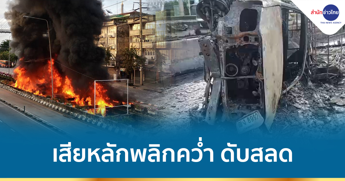 เมื่อเวลาประมาณ 06.00 น. วันนี้ (2 ก.ค.65) ตำรวจ สน.บางโพงพาง รับแจ้งมีอุบัติเหตุรถยนต์พลิกคว่ำ เกิดเพลิงลุกไหม้ จุดเกิดเหตุหน้าวัดปริวาสราชสงคราม ซอยพระรามที่ 3 ซอย 30 ถนนพระรามที่ 3 แขวงบางโพงพาง เขตยานนาวา กรุงเทพมหานคร ตำรวจและอาสาสมัครมูลนิธิร่วมกตัญญจึงเร่งเดินทางไปในจุดเกิดเหตุ พบเป็นถนน 4 เลน เหตุเกิดในช่องทางขวาสุด ซึ่งเป็นช่องทางเดินรถ BRT อยู่ติดกับแบริเออร์เพลิงลุกไหม้อย่างรุนแรง เบื้องต้นพบผู้เสียชีวิต 2 ราย เป็นชาย ร่างกระเด็นออกมานอกตัวรถแล้วถูกเพลิงลุกไหม้ เจ้าหน้าที่ใช้เวลา 40 นาที เพลิงจึงสงบ.-สำนักข่าวไทย