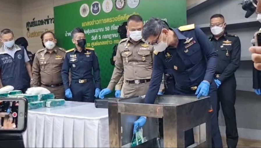 กรุงเทพฯ 5 ก.ค. – กรมศุลกากรตรวจยึดเคตามีน ลักลอบส่งออกไปไต้หวัน น้ำหนัก 50 กิโลกรัม มูลค่ากว่า 175 ล้านบาท พร้อมคุมเข้มการลักลอบนำเข้ากัญชาในลักษณะปะปนมากับสินค้าถูกกฎหมาย