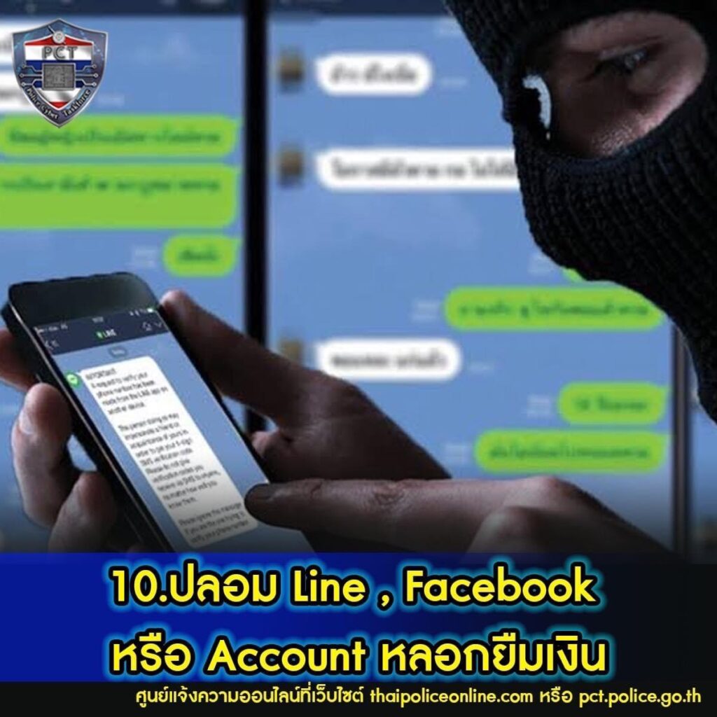 สำหรับเรื่องการปลอมหรือแฮ็ก Line หรือ Facebook ไปหลอกยืมเงินนั้น แนะนำว่าหากมีใครทักมายืมเงินควรโทรศัพท์หรือวิดีโอคอลกลับไปสอบถามก่อนว่าใช่เจ้าตัวจริงหรือไม่ แต่หากมิจฉาชีพอ้างว่าติดประชุมหรือธุระสำคัญอยู่ก็ควรรอให้เสร็จธุระ หรือขอให้เขาโทรกลับมาก่อน คงไม่มีเหตุจำเป็นเร่งด่วนที่จะต้องรีบโอนขนาดนั้น เพื่อไม่ให้ประชาชนตกเป็นเหยื่อแก๊งมิจฉาชีพ จึงขอฝากเตือนภัยประชาชนให้ทราบถึงวิธีการต่างๆ ที่คนร้ายมักใช้ในการหลอกเหยื่อบนโลกออนไลน์ รวม 17 ข้อ ดังนี้