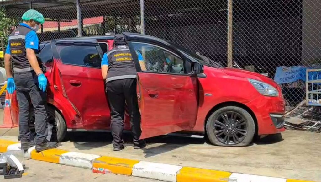 ล่าสุด ตำรวจได้ตรวจยึดรถของกลางมาตรวจสอบ พบสภาพความเสียหายที่ยางล้อรถแตกทั้งสี่ล้อ จากการถูกยิงสกัด ร่องรอยถูกยิงที่กันชนหน้า และประตูรถด้านหลัง ด้านละ 1 รอย รวมถึงยังพบร่องรอยการเฉี่ยวชนบริเวณด้านหน้าและด้านข้างของรถ ส่วนการตรวจสอบป้ายชำระภาษีรถยนต์ประจำปี ขาดอายุตั้งแต่ วันที่ 13 กันยายน 2564 และพบใบเสร็จการเติมน้ำมันที่ปั๊มน้ำมันแห่งหนึ่ง ย่านเอกมัย ในเวลา 22.54 น. ซึ่งเป็นช่วงก่อนเกิดเหตุ