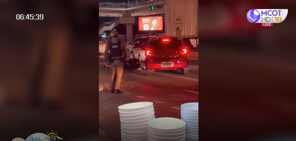 ตำรวจสายตรวจยิงสกัดรถเก๋งสีแดง บริเวณแยกประชาสงเคราะห์ ย่านดินแดง หลังมีพิรุธและพยายามหลบหนี ก่อนตำรวจจะตามไปจนเจอรถห่างจากจุดเกิดประมาณ 2 กิโลเมตร ภายในมียาไอซ์ 2.77 กรัม และมีดดาบยาว 2 เล่ม