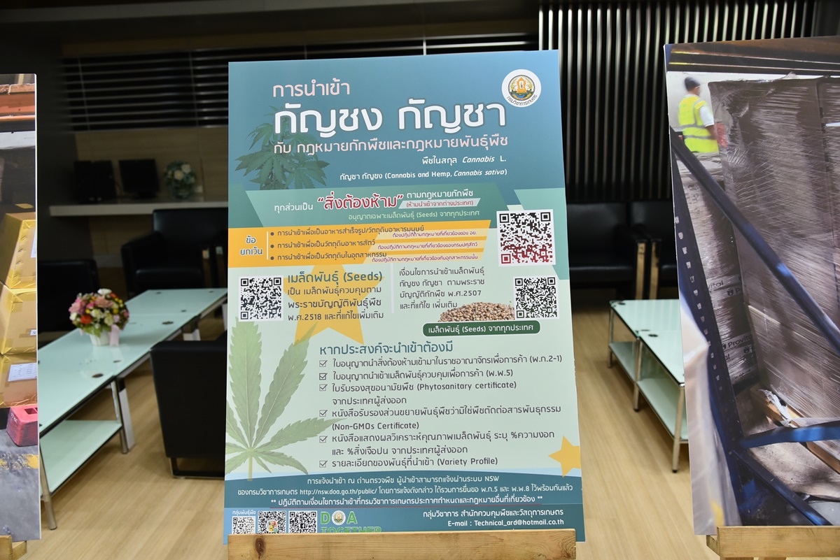 นายพชร อนันตศิลป์ อธิบดีกรมศุลกากร พร้อมด้วยนายระพีภัทร์ จันทรศรีวงศ์ อธิบดีกรมวิชาการเกษตร แถลงข่าวการจับกุมกัญชา-กัญชง จำนวน 5.3 กิโลกรัม ผ่านผู้ขนส่งสินค้าเร่งด่วนทางท่าอากาศยานสุวรรณภูมิ