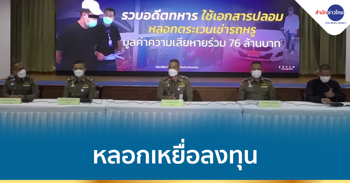 กทม. 30 ก.ค.- กองปราบจับอดีตทหารยศสิบเอก ก่อเหตุหลอกให้ร่วมลงทุนอ้างให้ผลตอบแทนสูง มีผู้หลงเชื่อกว่า 50 คน และยังพบว่าปลอมเอกสารเพื่อไปเช่ารถยนต์หรู ก่อนนำไปขายต่อ มูลค่าความเสียหายรวมกว่า 91 ล้านบาท