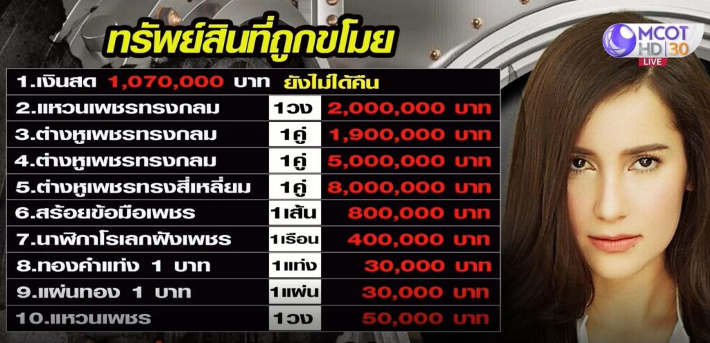 ก่อนเกิดเหตุ นางเอกสาวพักอาศัยอยู่ภายในห้องเกิดเหตุมาโดยตลอด โดยเก็บทรัพย์สินต่างๆ ไว้ในตู้เซฟ ซึ่งอยู่ในตู้เสื้อผ้าของผู้เสียหายอีกชั้นหนึ่ง ต่อมาเมื่อวันที่ 21 กรกฎาคม ผู้เสียหายได้ตรวจสอบทรัพย์สินของตนที่อยู่ภายในตู้เซฟ ปรากฏว่าทรัพย์สินสูญหายไป โดยภายในห้องพักไม่มีร่องรอยการงัดแงะหรือรื้อค้นแต่อย่างใด จึงเดินทางมาร้องทุกข์ต่อพนักงานสอบสวน เพื่อดำเนินคดีกับคนร้าย