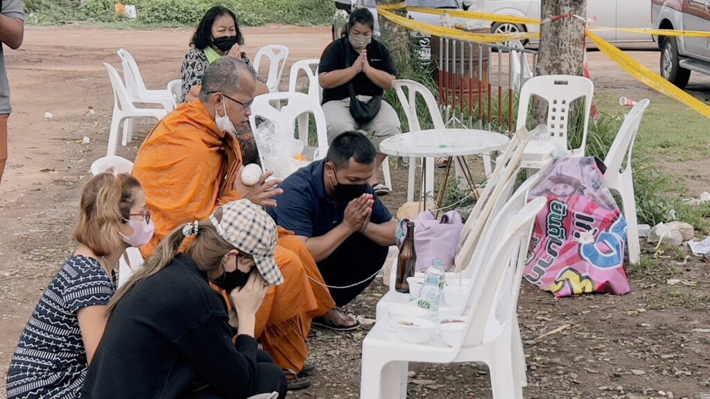 ชลบุรี 7 ส.ค.- ครอบครัวผู้เสียชีวิตเหตุไฟไหม้สถานบันเทิง MOUNTAIN B ประกอบพิธีเชิญดวงวิญญาณตามความเชื่อ บรรยากาศเป็นไปด้วยความโศรกเศร้า