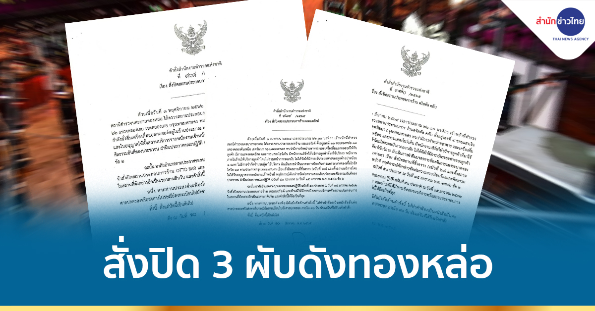 กรุงเทพฯ 11 ส.ค. – รอง ผบ.ตร. เซ็นคำสั่งปิดผับทองหล่อ 3 แห่ง เป็นเวลา 30-60 วัน หลังพบไม่มีใบอนุญาต ฝ่าฝืนประกาศโควิด-19