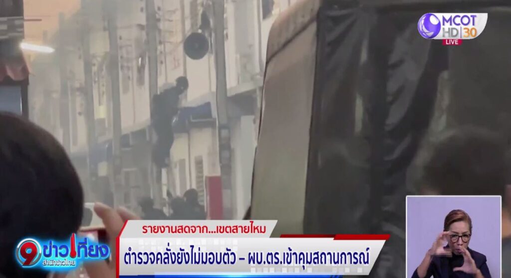 เขตสายไหม 15 มี.ค. – พล.ต.อ.ดำรงศักดิ์ กิตติประภัสร์ ผบ.ตร. ลงพื้นที่บัญชาการเหตุสารวัตรคลั่ง ก่อเหตุยิงปืนบริเวณบ้านพัก ย่านสายไหม เพื่อควบคุมสถานการณ์ในจุดเกิดเหตุด้วยตัวเอง ซึ่งขณะนี้ยังอยู่ระหว่างการวางแผนร่วมกับชุดปฏิบัติการ. -สำนักข่าวไทย