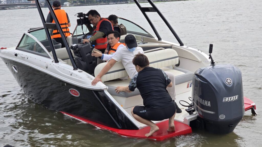 ก่อนเริ่มจำลองเหตุการณ์ทุกรอบ นักแสดงทุกคน ได้ไหว้ขอขมาพระแม่คงคาก่อนทำการจำลองเหตุการณ์ครั้ง รอบที่ 1-4 ทุกคนสวมเสื้อชูชีพ นั่งอยู่บริเวณท้ายเรือกับหนูวรรณ ที่แสดงเป็นแซน มีนายณวัฒน์ อิสรไกรศีล เจ้าของมิสแกรนด์ และอาจารย์ปานเทพ พัวพงษ์พันธ์ คณบดีวิทยาลัยการแพทย์แผนตะวันออก มหาวิทยาลัยรังสิต วิ่งเรือไปถึงบริเวณสะพานพระรามที่ 7 ก่อนจะวนเรือกลับมา ใช้ความเร็ว 8 น็อต หรือประมาณ 14.816 กิโลเมตรต่อชั่วโมง มีการจำลองเหตุการณ์ที่แตงโมมีการจับขาแซนบริเวณท้าย ก่อนตกจากเรือบริเวณหน้าท่าเรือพิบูลสงคราม 1 โดยที่ไม่มีการถูกใบพัดเรือบาดขา หรือได้รับอาการบาดเจ็บใด ๆ สักรอบ ท่ามกลางการดูแลความปลอดภัยอย่างใกล้ชิดจากทีมกู้ภัย ใช้เวลาในการจำลองรอบละประมาณ 10 – 15 นาที