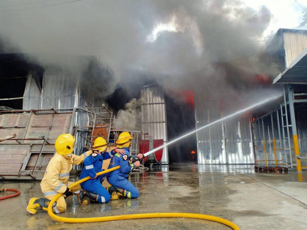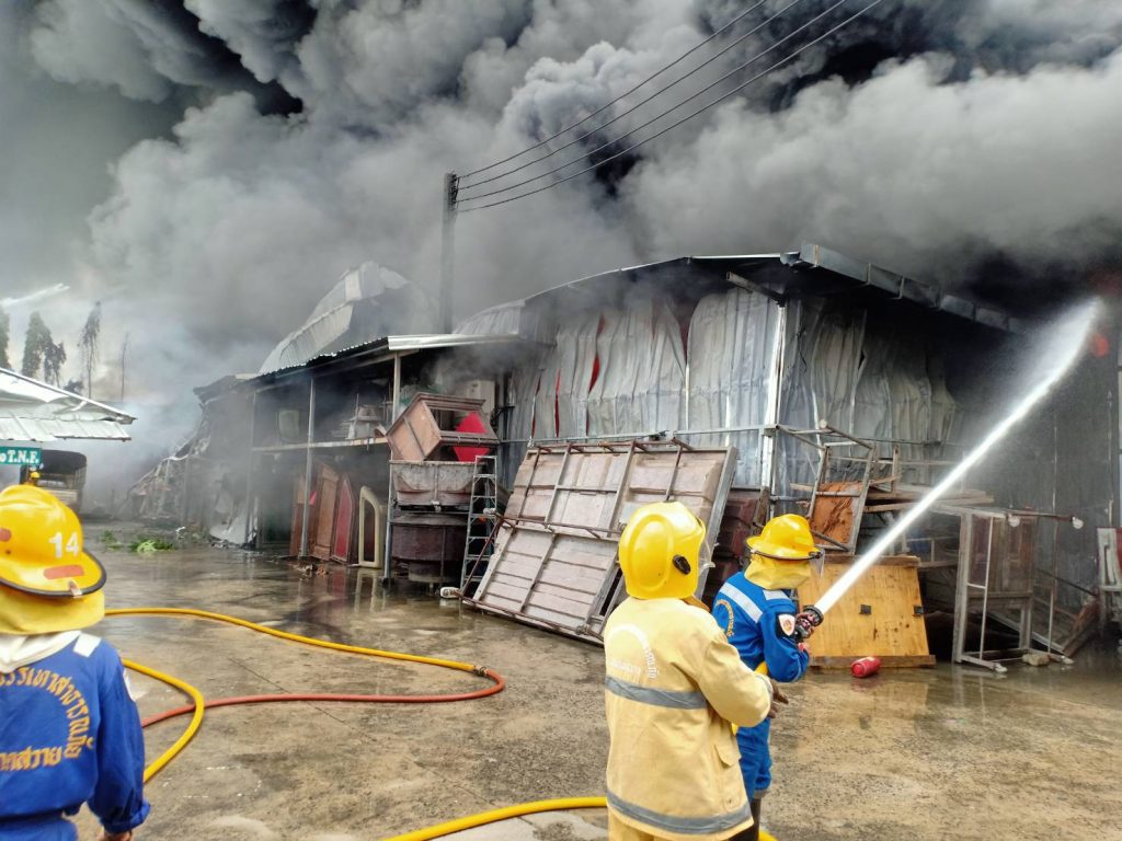 ปทุมธานี 28 ก.ค.-เวลา 12.45 น. ไฟไหม้โรงงานไฟเบอร์กลาส ถนนเลียบถนนวงแหวนตะวันออก ก่อนถึงด่านธัญบุรี จ.ปทุมธานี เจ้าหน้าที่อยู่ระหว่างเร่งดับเพลง การจราจรติดขัด เนื่องจากผู้ใช้เส้นทางชะลอตัวดูเหตุการณ์