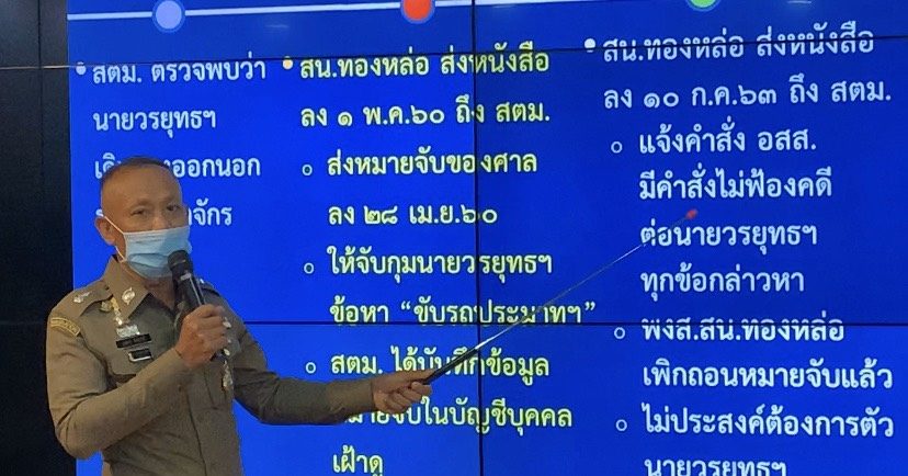 โดยหนังสือ หมายจับจาก สน.ทองหล่อ มาถึง สตม. เมื่อวันที่ 1 พฤษภาคม 2560 และ ส่งหมายจับของศาลลง 28 เมษายน 2560 ให้จับกุมนายวรยุทธฯข้อหา “ขับรถประมาทฯ” โดยสตม. ได้บันทึกข้อมูลหมายจับในบัญชีบุคคลเฝ้าดูทันที