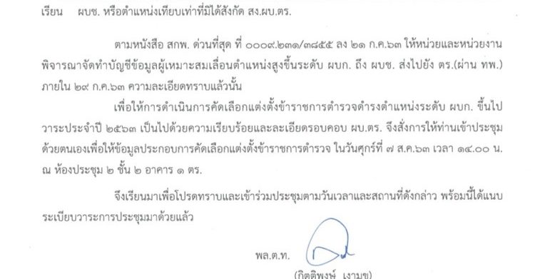 กทม.31 ก.ค.- ผู้บัญชาการกำลังพล ส่งหนังสือเชิญผู้บัญชาการประชุมพร้อมชงคุณสมบัติผู้เหมาะสมเป็น ผบก.ขึ้นไป 7 สิงหาคมนี้