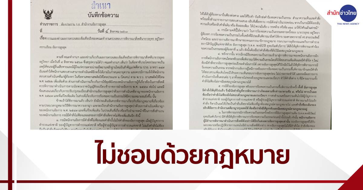 จึงเรียนมาเพื่อโปรดพิจาณา อนึ่ง เรื่องนี้เป็นเรื่องสำคัญและมีผลต่อความเชื่อถือศรัทธาที่ประชาชนมีต่อองค์กรอัยการ จึงใคร่ขอนำความเห็นของข้าพเจ้าตามบันทึกนี้เผยแพร่ทางสื่อต่างๆ ให้ประชาชนได้รับทราบด้วย .-สำนักข่าวไทย