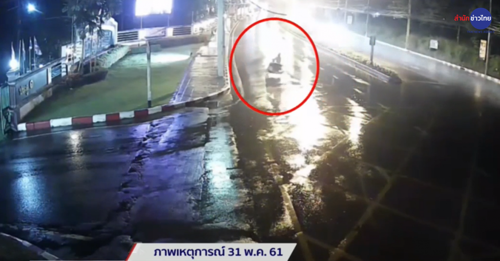 ส่วนกล้องวงจรปิดบริเวณแยกพระยาตรัง จุดเชื่อมถนนรักศักดิ์ชมูล พบว่า รถเบนซ์สีขาวคันเดียวกัน ขับมาจอดติดไฟแดง ในระยะเวลาใกล้เคียงกับที่เกิดเหตุ