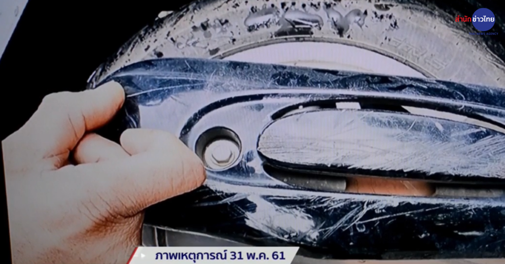 จุดแรกได้ไปบริเวณใกล้เคียงที่เกิดเหตุ บนถนนรักศักดิ์ชมูล บริเวณทางเข้ามหาวิทยาลัยราชภัฏรำไพพรรณี มีภาพลูกสาวขี่รถจักรยานยนต์ไปกลับรถ ซึ่งอยู่ห่างจากจุดที่รถจักรยานยนต์ลูกสาวเสียหลักไปชนท้ายรถกระบะประมาณ 250 เมตร ซึ่งในช่วงเวลาเพียง 4-5 วินาที มีรถเบนซ์ สีขาว หมายเลขทะเบียน 1 กข 832 กรุงเทพฯ ขับตามหลังผ่านบริเวณที่เกิดเหตุ