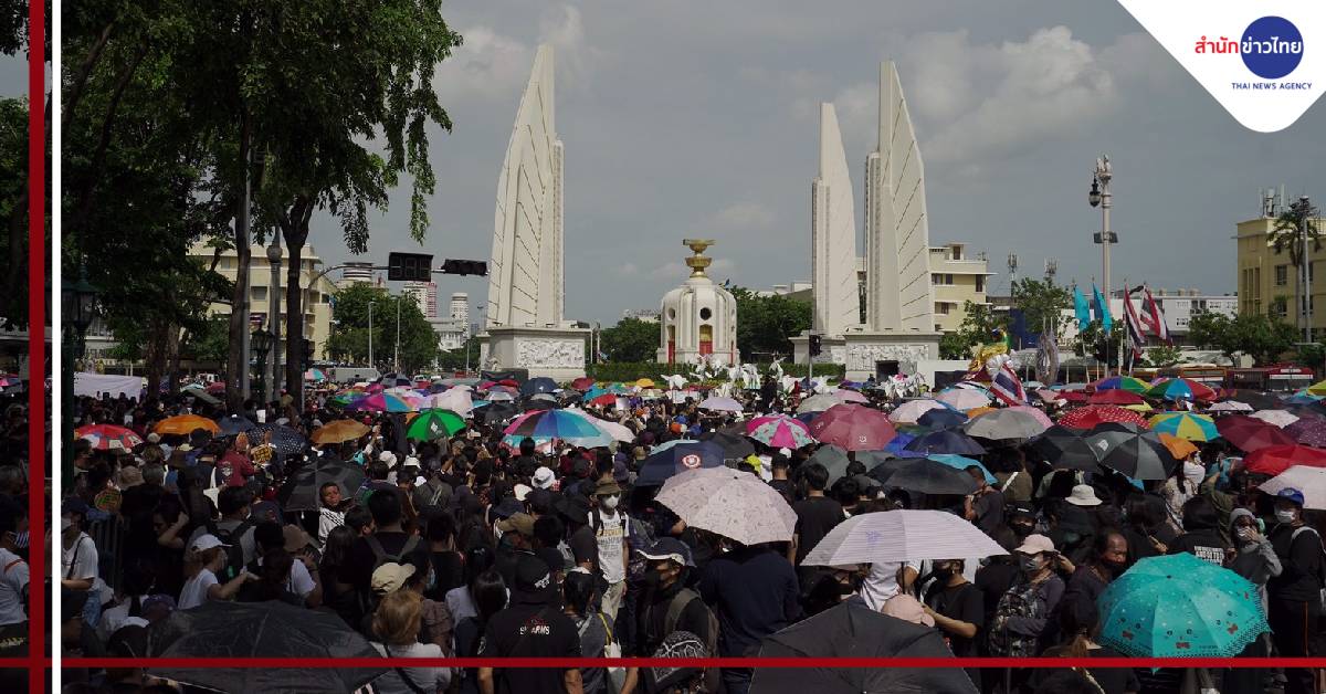 พลตำรวจตรีสมประสงค์ เย็นท้วม รองผู้บัญชาการตำรวจนครบาล กล่าวถึงการดูแลความเรียบร้อยการชุมนุมของนักศึกษา 2 กลุ่ม ที่บริเวณอนุสาวรีย์ประชาธิปไตยว่า ตัวแทนนักศึกษาทั้ง 2 กลุ่ม ได้ทำเรื่องขออนุญาตจัดการชุมนุมกับตำรวจที่รับผิดชอบในพื้นที่แล้ว ซึ่งทางตำรวจก็กำหนดเงื่อนไขให้ทั้ง 2 กลุ่มอยู่ในพื้นที่ที่กำหนดเท่านั้น หากมีผู้มาร่วมชุมนุมมากขึ้น ก็จะปรับขยายพื้นที่ออกไปตามความเหมาะสม และไม่ไปกระทบการใช้ชีวิตของประชาชนที่ไม่ได้เข้าร่วมการชุมนุม รวมถึงป้องกันไม่ให้เกิดการกระทบกระทั่งระหว่างผู้ชุมนุมทั้ง 2 กลุ่มขณะที่วันนี้ตำรวจนครบาจัดกำลังตำรวจ 4 กองร้อย หรือประมาณ 600 นาย จากกองบังคับการอารักขาและควบคุมฝูงชน คอยดูแลรักษาความสงบเรียบร้อยผู้ชุมนุมทั้งสองกลุ่ม เพื่อให้ปฏิบัติตามกรอบของกฎหมาย โดยเน้นย้ำให้อยู่เฉพาะพื้นที่ที่ได้ทำข้อตกลงกันไว้เท่านั้น ไม่เช่นนั้นจะถูกดำเนินคดีฐานฝ่าฝืน พ.ร.บ.การชุมนุมในที่สาธารณะ พร้อมจัดกำลังตำรวจหญิงจำนวน 4 หมู่, ตำรวจจราจรคอยอำนวยความสะดวกการจราจรให้พี่น้องประชาชน