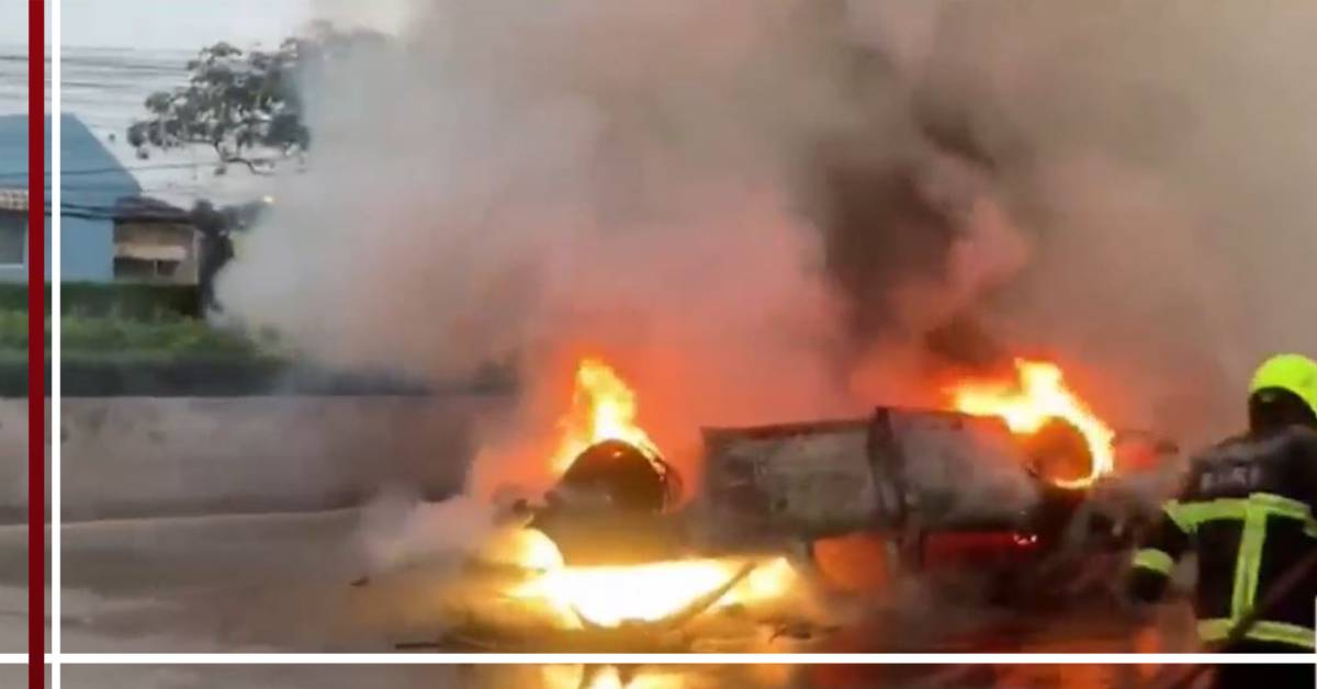 กทม. 18 ส.ค. – อุบัติเหตุรับอรุณ ชายวัยกลางคนซิ่งรถหรูชนท้ายรถบรรทุกไม้ พลิกคว่ำไถลไปไกลหลายร้อยเมตร ไฟลุกท่วม บริเวณทางลงอุโมงค์เกษตร ถนนเกษตร-นวมินทร์ คนขับบาดเจ็บเล็กน้อย มุดออกมาโบกแท็กซี่ไปโรงพยาบาลเอง
