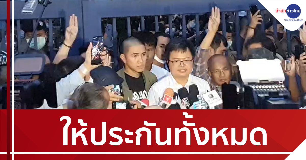 หลังจากศาลอาญามีคำสั่งอนุญาตให้ฝากขังผู้ต้องหาทั้งหมด ผู้ขอประกันได้ยื่นคำร้องขอปล่อยตัวชั่วคราวให้ผู้ต้องหาทั้งหมด ศาลพิจารณาคำร้องขอปล่อยตัวชั่วคราวดังกล่าวแล้ว มีคำสั่งอนุญาตให้ปล่อยตัวผู้ต้องหาทั้งหมด ระหว่างสอบสวนตลอดจนถึงชั้นพิจารณาชั่วคราว โดยมีประกันในวงเงินคนละ 100,000 บาท โดยไม่ต้องมีหลักประกัน แต่มีเงื่อนไขห้ามกระทำการใดๆ ในลักษณะเดียวกับการกระทำที่ถูกกล่าวหาในคดีนี้อีก มิฉะนั้นถือว่าผิดสัญญาประกัน ศาลได้แจ้งคำสั่งปล่อยตัวชั่วคราวดังกล่าวและปล่อยตัวผู้ต้องหาแล้ว.-สำนักข่าวไทย