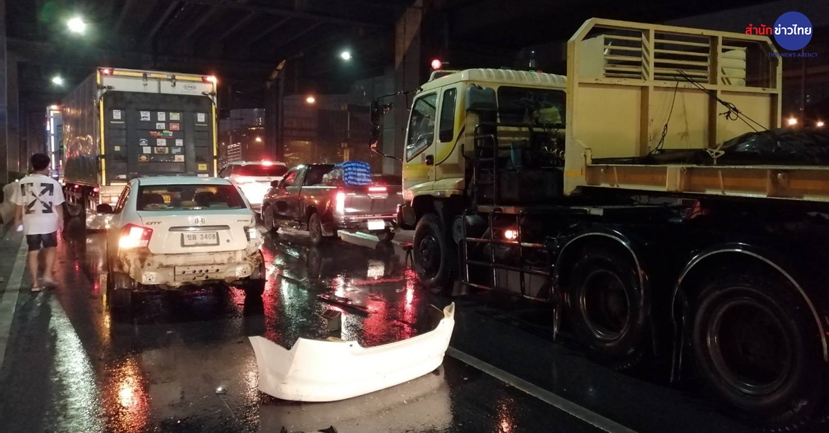 กรุงเทพฯ 9 ต.ค. – ฝนตกถนนลื่น รถชนกันยับกว่า 20 คัน บนถนนวิภาวดีฯ ขาเข้า ช่วงแยกหลักสี่ ไม่มีผู้บาดเจ็บหรือเสียชีวิต