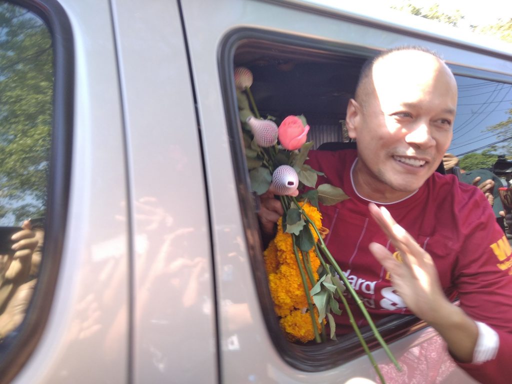ต่อคำถาม มีข่าวก่อนหน้านี้ว่า นายณัฐวุฒิ เคยให้กำลังใจแกนนำกลุ่มราษฎรที่ถูกขังในเรือนจำพิเศษกรุงเทพ เขาบอกว่า เคยเจอกันข้างใน ได้พูดคุยกัน แต่ยังไม่ขอพูดอะไร เพราะยังติดเงื่อนไขการคุมประพฤติอยู่ แต่ถ้าได้สิทธิขั้นพื้นฐานคืนทั้งหมด ก็จะสามารถพูดได้ โดยโทษที่เหลืออยู่ กำหนดพ้นโทษปลายเดือนมีนาคม 2564 แต่จะถอดกำไลอีเอ็มเมื่อใด อยู่ที่กรมคุมประพฤติ ส่วนเสื้อกีฬาสีแดงที่ใส่ออกจากเรือนจำวันนี้เป็นเสื้อตัวเดียวกับที่ใส่ในวันเข้าเรือนจำ.-สำนักข่าวไทย